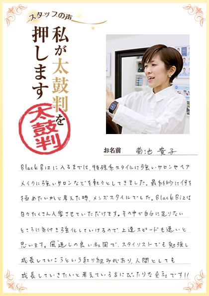 ブラックビズで働いているスタッフの年齢も幅広いので20代、30代、40代関係なく入社して頂けると思います。